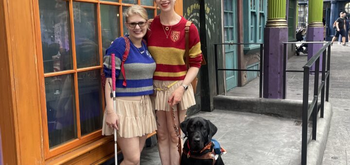 Case + Cass explore the Wizarding World with house sweaters, a guide dog, and all the magic (plus the accessibility tea).